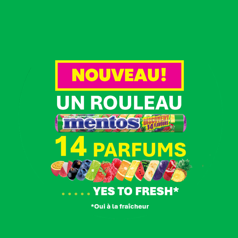 Découvrez les nouveaux bonbons Mentos Discovery 14 flavours! 14 goûts différents dans un seul et même rouleau : fruit de la passion, pastèque, cerise, ananas, litchi… Découvrez-les tous sans plus attendre!