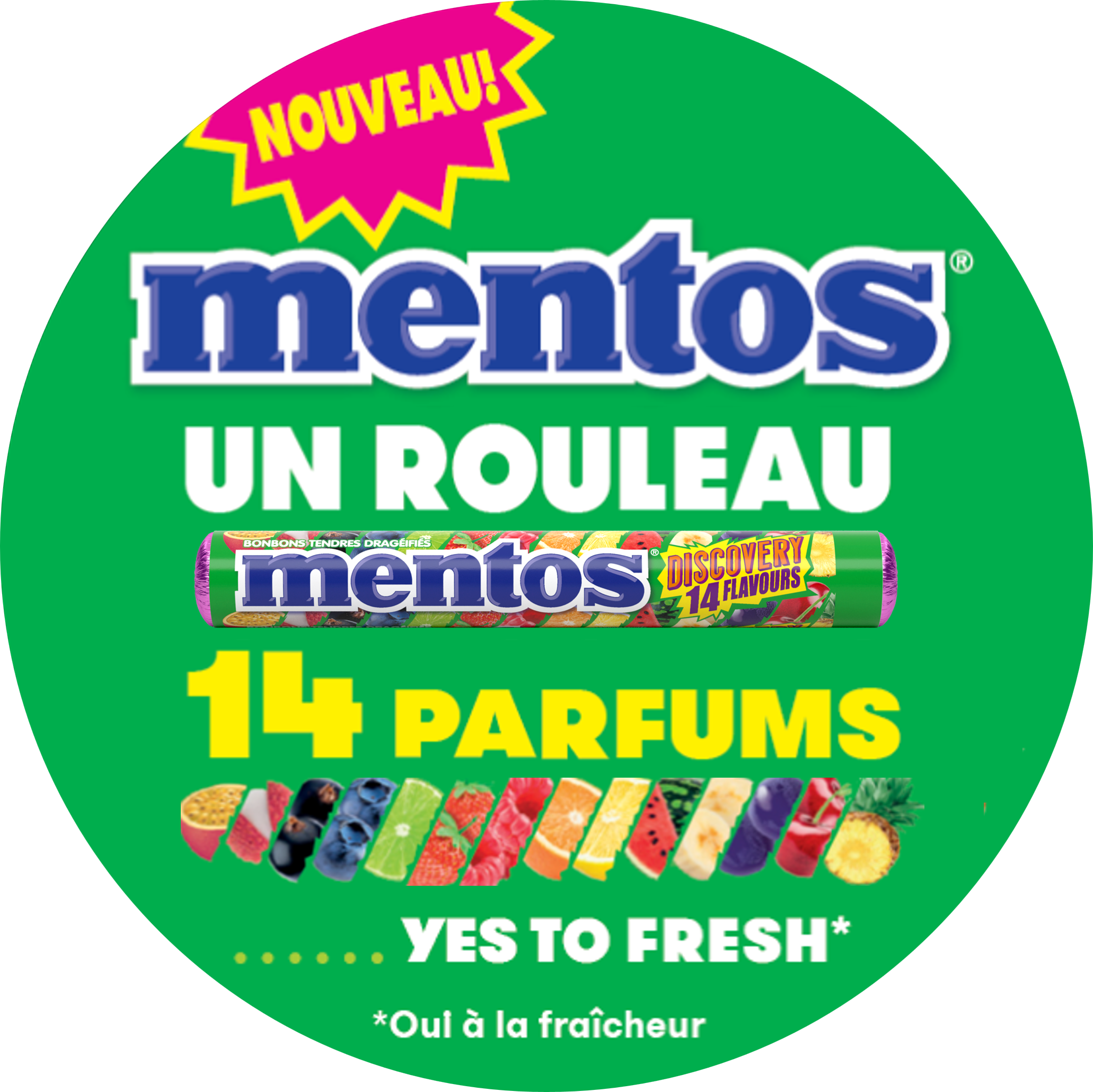 Découvrez les nouveaux bonbons Mentos Discovery 14 flavours! 14 goûts différents dans un seul et même rouleau : fruit de la passion, pastèque, cerise, ananas, litchi… Découvrez-les tous sans plus attendre!